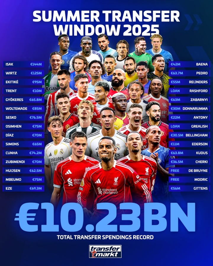 开云入口-足坛夏季转会窗支出达102.3亿欧元,历史性突破单窗口纪录